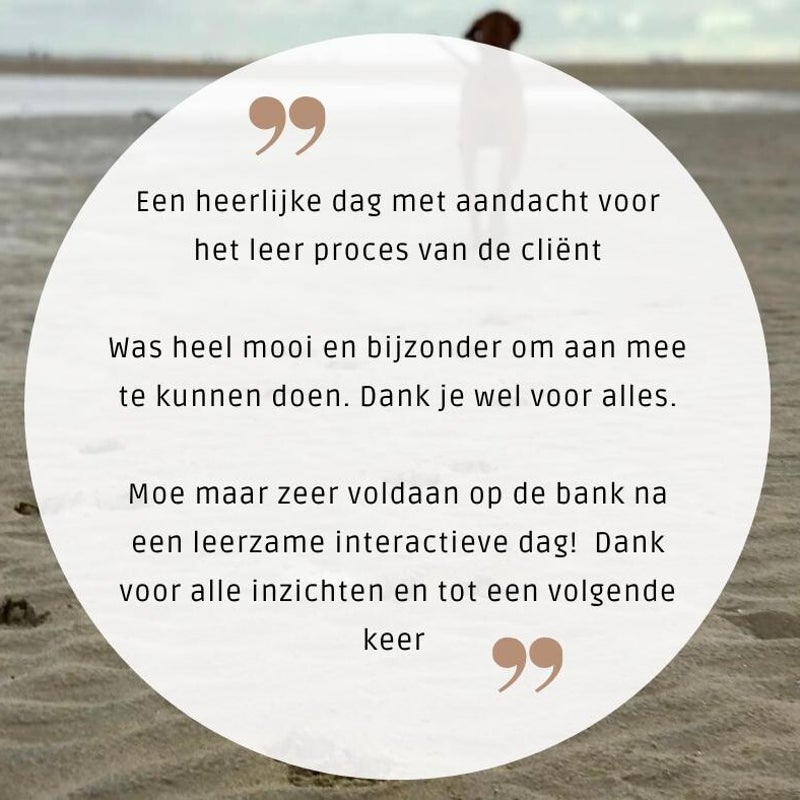 - Nazorg; 3 weken na de cursus neem ik contact met je op en bespreken we de voortgang van jouw proces